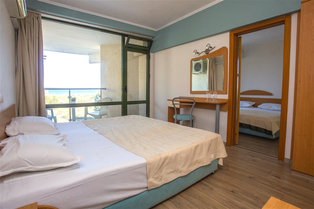 2-lôžkové a 3-lôžkové izby s možnosťou prístelky len pre dieťa • klimatizácia • SAT/TV • sprcha/WC • balkón s výhľadom na morskú stranu • detská postieľka na vyžiadanie zdarma (obmedzený počet)