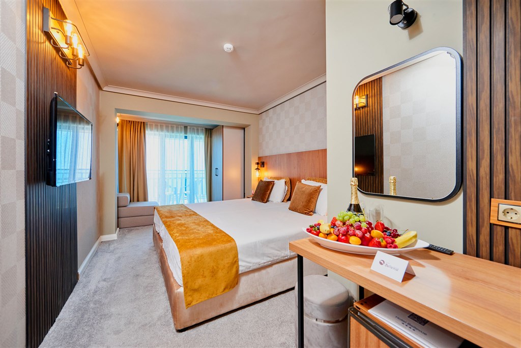 moderne zariadený hotel s príjemnou atmosférou a výbornou polohou • vhodný pre klientov všetkých vekových kategórií • široká priestranná piesočnatá pláž s pozvoľným vstupom do mora je vzdialená cca 30 m • ležadlá a slnečníky na pláži zdarma (1 slnečník a 2 ležadlá na izbu)