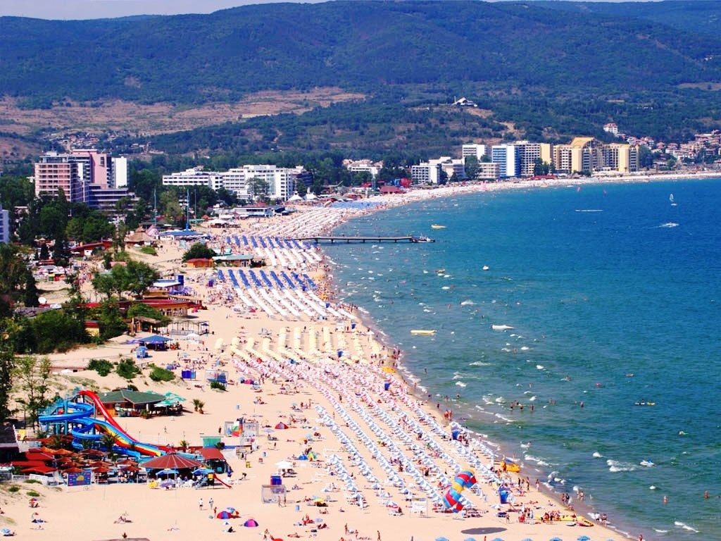 Slnečné pobrežie, najväčší bulharský rekreačný komplex, patrí k najobľúbenejším prímorským letoviskám. Leží 40 km severne od Burgasu a asi 5 km od Nesebaru. 200 m široká, zvoľna sa do mora zvažujúca pláž, vďaka čomu je vhodná najmä pre deti, sa tiahne v dĺžke 8 km a je spestrená dunami, pestrými kĺzačkami, sprchami, požičovňou ležadiel, slnečníkov a športových potrieb. Milovníci športu si môžu prenajať vodné lyže, vodné bicykle, windsurfing, vodné skútre, rogalo, jazdu na koni, banán a pod. Vychádzky do okolia i do starobylého Nesebaru môžete striedať s výletom na vozoch s koňmi, po večeroch si oddýchnuť v štýlových reštauračných zariadeniach, prípadne v letnom divadle. Dopravu v letovisku zabezpečuje minivláčik, pravidelné autobusy zase spájajú stredisko s Nesebarom, Elenite, Burgasom a Varnou. Stredisko je držiteľom medzinárodného ocenenia "Modrá vlajka" za čistotu prírodného prostredia.