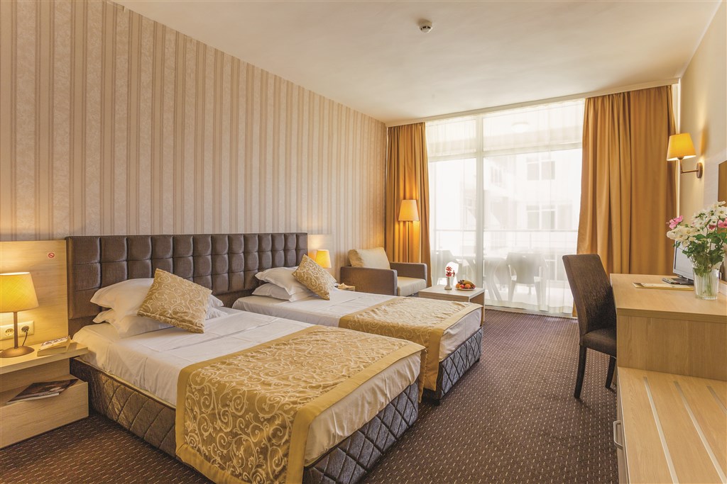 V hoteli sme strávili 8 dní. Je to 4* hotel s dobrou polohou, hneď pri hoteli sú promenády. Je veľmi blízko do centra letoviska a k mólu odkiaľ chodí vláčik do Nesebaru. Izbu sme mali orientovanú smerom na bazén, ale izby sú tak odhlučnené, že po zavretí okien sme nič nepočuli, aj keď pod oknami je bar a hrala hudba. Strava je výborná, nemáme čo vytknúť. Výborný výber jedál, každý deň je tématický. All inclusive bol na úrovni, robili aj rôzne drinky miešané. Cez obed sme mali snacky, ktoré bolo možné si vziať aj k bazénom (plastové taniere). Na pláž je to cca 5 min. More bolo v auguste príjemne teplé, plytké a čisté. Nemali sme žiadne medúzy. Náš 7 ročný syn si do sýtosti užil pirátsku loď a šmýkačky. Každý deň boli aj animačné programy. Hotel odporúčame.