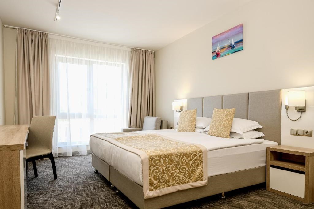 nový, moderný hotel s príjemnou atmosférou a výbornou polohou • nachádza sa cca 500 m od piesočnatej pláži s pozvoľným vstupom do mora • ležadlá a slnečníky na pláži za poplatok