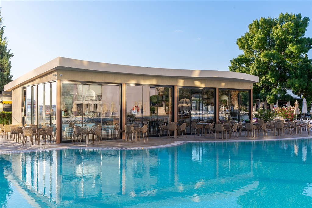 vodné športy pri bazéne a na pláži • vodné bicykle • windsurfing • vodné lyže • parasailing • v letovisku - fitness • tenisové kurty • šmykľavky • aquapark • diskotéky • karaoke show • reštaurácie • bary • obchody • a iné atrakcie pre deti i dospelých