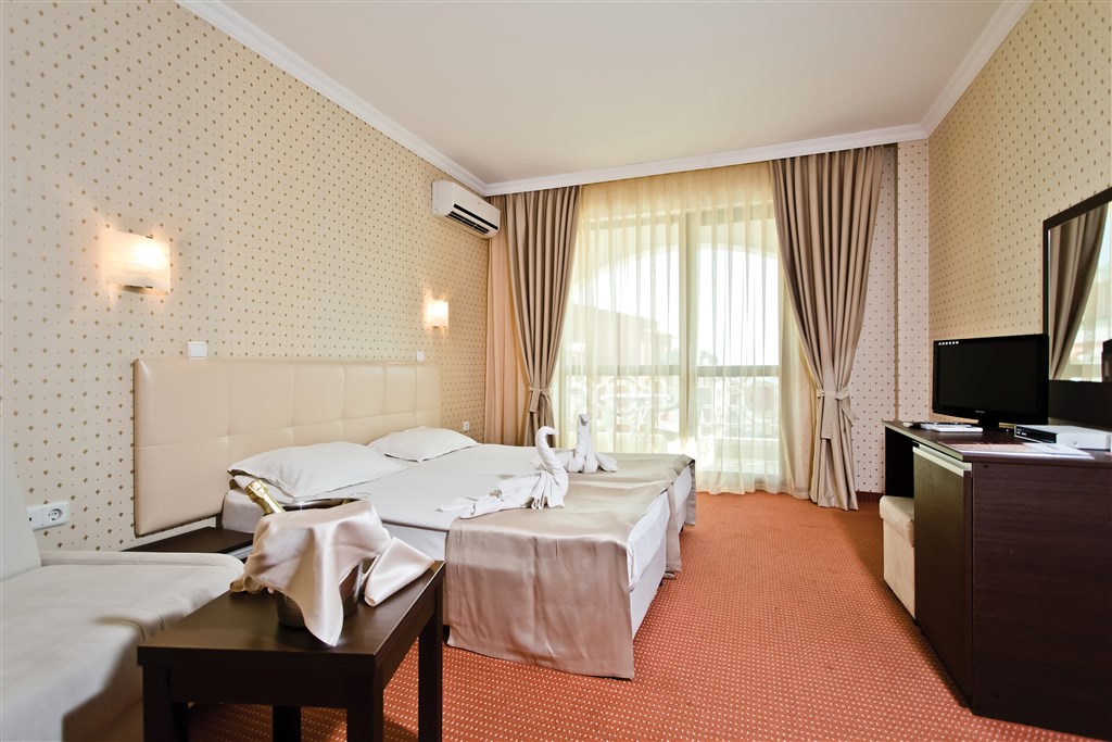 Hotel vo výbornej lokalite - neďaleko od Slnečného pobrežia, Nessebaru aj centra Sv. Vlasu a pritom v tichom prostredí. Tí, ktorí uprednostňujú pokoj a nie ruch nočného života to určite ocenia.Ubytovanie celkom v pohode - žiaden luxus, ale na prespatie úplne postačuje.Strava perfektná, chutná - aj keď každý deň to isté, vôbec to neprekážalo. Pomerne veľký výber, takže postupne bolo možné ochutnať zo všetkého. Najmä široká ponuka zeleniny a ovocia ma prekvapila. Aj nápoje v rámci all inclusive boli fajn - alko, nealko rôzneho druhu. Za menší nedostatok považujem to, že v 4 hviezdičkovom hoteli neboli k dispozícii lyžičky na kávu ale iba umelohmotné miešadlá a nápoje v bare nalievali niekedy do umelých pohárov (ako v staničnom bufete).Pláž - tá najbližšie k hotelu - nič moc. Ale ak si človek zašiel cca 500 m vpravo, bolo super - skutočne pozvoľný vstup do mora, čistý piesok aj 100 m od brehu, bez kameňov. Najmä pre deti naozaj bezpečné.Dovolenku celkovo hodnotím veľmi pozitívne. Bulharsk
