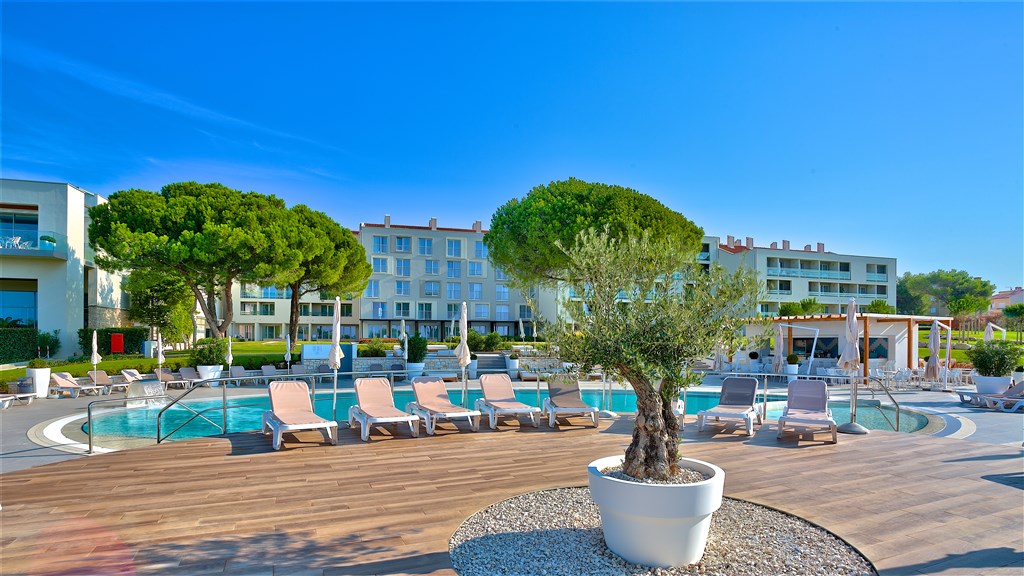 moderný 4-poschodový hotel pozostáva z dvoch krídiel • vhodný na aktívnu dovolenku vo dvojici i pre rodiny s deťmi • cca 150m od hotela úzka dlhá prírodná skalnato - kamenistá pláž s upravenými plochami na slnenie • neďaleko mestská piesočnatá pláž • vhodná pre malé deti, pozvoľne sa zvažuje a v mori je piesok • ležadlá a slnečníky za poplatok
