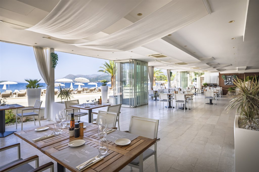 plne klimatizovaný hotel • recepcia • v celom hoteli Wi-Fi pripojenie zdarma • hlavná hotelová reštaurácia • reštaurácie á la carte La Mar a Wellness bar • piano bar- terasa s výhľadom na more • obchodík so suvenírmi • vonkajší bazén so sladkou vodou • ležadlá a slnečníky darma (v obmedz. počte) • vnútorný bazén so sladkou vodou (ležadlá zdarma v obmedz. počte) • wellness centrum – beauty zóna a masáže za poplatok) • fitness zdarma • nabíjacia stanica pre elektromobily (za poplatok) • pri hoteli parkovanie za poplatok cca 12 EUR/deň/auto