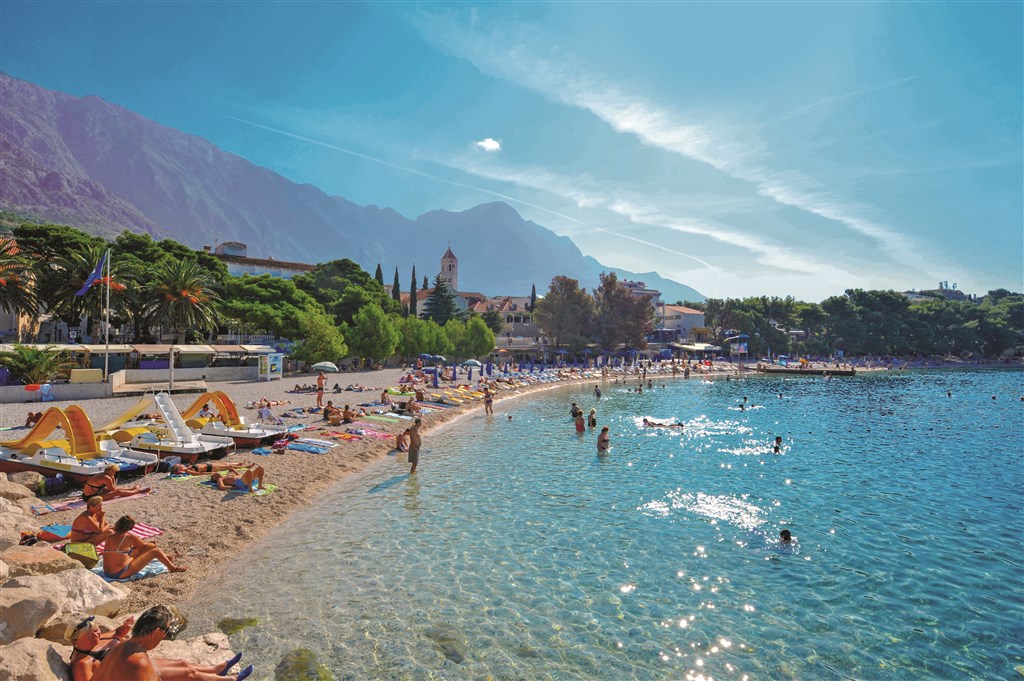 vodné športy na pláži • diskotéka a hudobné bary na pláži v mestečku Baška Voda