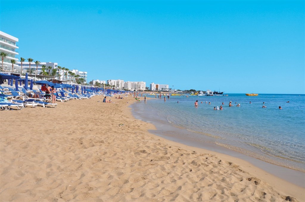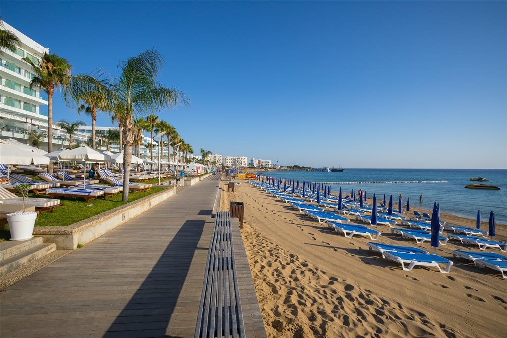 vkusný areál hotela ústi priamo na krásnu piesočnatú pláž s pozvoľným vstupom do mora vhodnej pre rodiny s deťmi • slnečníky a ležadlá na pláži (za poplatok) • v pešej dostupnosti od centra strediska Protaras s reštauráciami, barmi, tavernami a nákupnými možnosťami • cca 1 km od veľmi obľúbenej pláže Fig Tree Bay - dostupná pešou promenádou popri mori • cca 55 km od letiska v Larnake