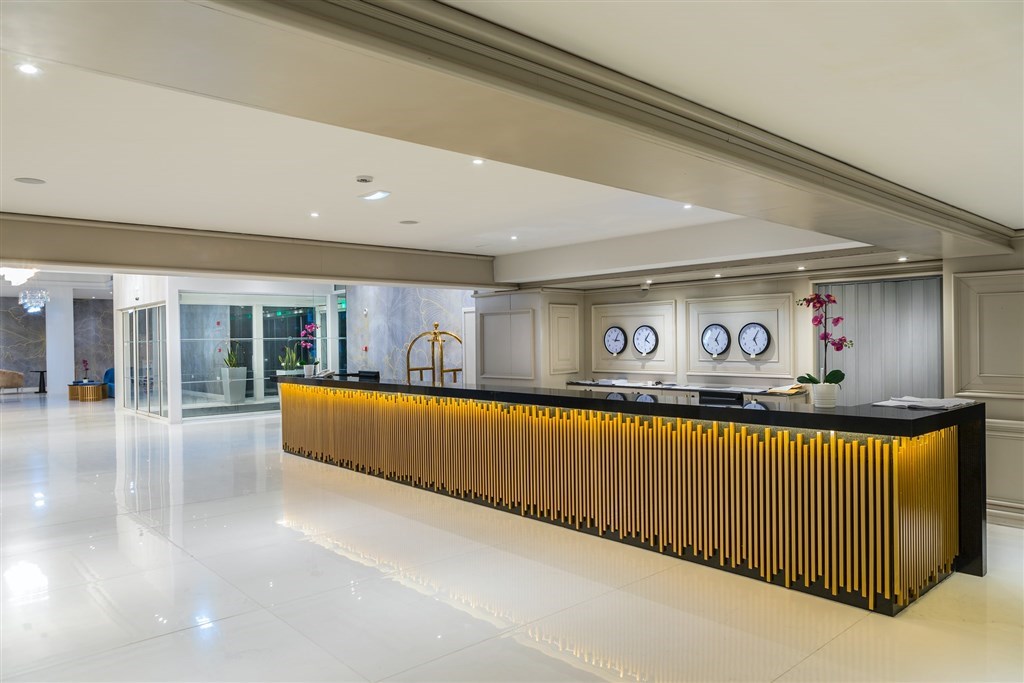 reprezentatívna vstupná hala s recepciou a lobby barom • 2 hotelové reštaurácie • 5 a´la carte reštaurácií - talianska, ázijská, mexická, grécka a cyperská (1x za pobyt možnosť využiť zdarma) • slnečná terasa s vonkajším posedením a výhľadom na more • 2 pool bary • lobby bar • vonkajší bazén • detský bazén • vnútorný bazén • slnečníky a ležadlá v areáli hotela (zdarma) • plážové osušky (zdarma) • fínska a parná sauna, vírivka (1x za pobyt zdarma) • beauty a wellness centrum (za poplatok) • konferenčná miestnosť • wifi (zdarma) • tenisový kurt • biliard • stolný tenis • fitness centrum (zdarma) • hotelové animácie • večerné show a živá hudba