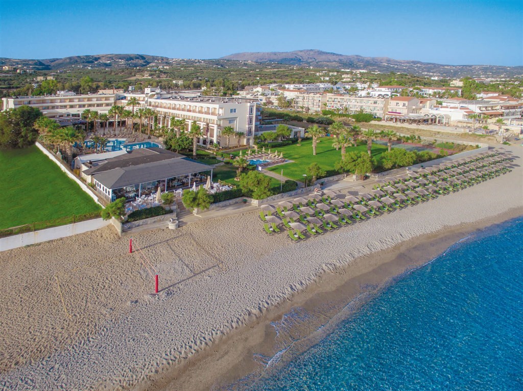 moderný, elegantný hotel nájdete len 6 km od turistami vyhľadávaného mesta Rethymno • je situovaný v pokojnom prostredí, v obklopení paliem a exotických kvetov, priamo pri krásnej pláži strediska Adelianos Kampos • piesočnatá pláž, pri vstupe do vody premiešaná s kamienkami, má pozvoľný vstup do mora • ležadlá a slnečníky na pláži (zdarma) • plážové osušky (za depozit) • 75 km od letiska v Heraklione