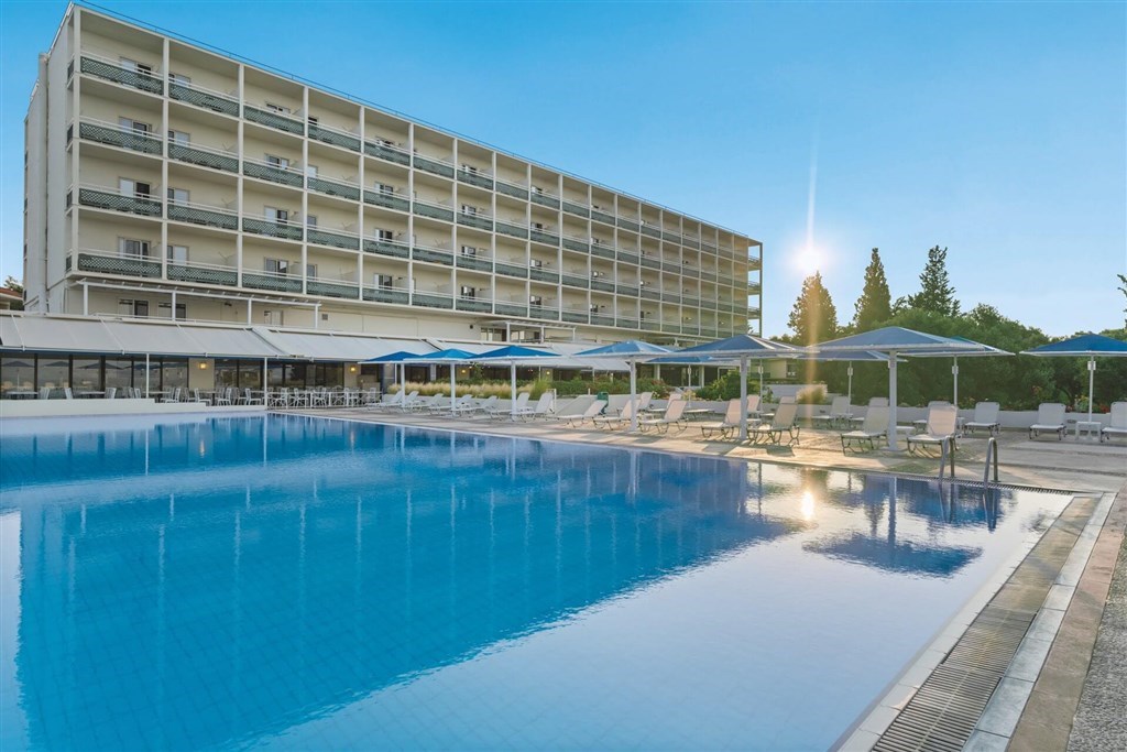 hotel sa stal obľúbenou súčasťou našej ponuky. S polohou priamo na piesočnatej pláži, s pozvoľným vstupom do mora a možnosťou až štvorlôžkových izbieb je rezort vhodný aj pre rodiny. Rozľahlá záhrada poskytuje priestor na hru aj zábavu Aby bol komfort úplný, all inclusive bar nájdete pri pláži, pri bazéne na terase, z ktorej sa ponúka pohľad na panorámu blízkej gréckej pevniny. Výborný pomer ceny a kvality uspokojí stredne náročných klientov.