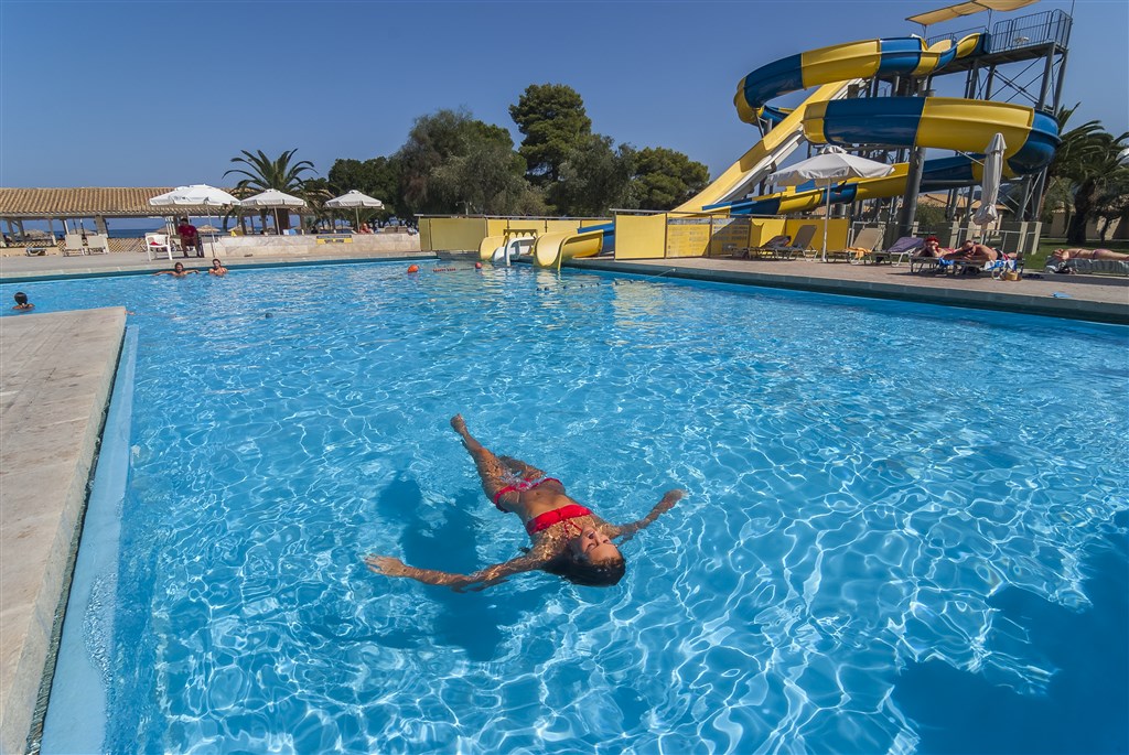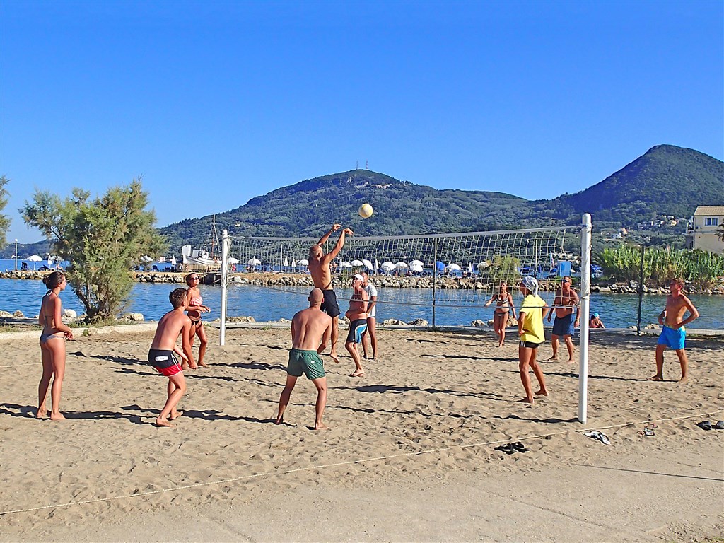 rozľahlý hotelový komplex s ideálnou polohou priamo na pláži patrí k obľúbeným hotelom ostrova Korfu • piesočnato-kamienková pláž s pozvoľným vstupom do mora • ležadlá, slnečníky a vodné športy na pláži za poplatok • all inclusive bar na pláži • svojím vybavením je určený pre všetky vekové kategórie, predovšetkým však pre rodiny s deťmi
