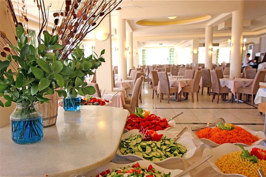 komplex pozostáva z hlavnej budovy a viacerých ubytovacích blokov, umiestených v priestrannom upravenom parku • recepcia • hlavná reštaurácia • reštaurácia pri pláži • bar • plážový bar • nočný bar • diskotéka • amfiteáter • niekoľko bazénov (1 bazén s toboganom a šmykľavkou za poplatok) • ležadlá a slnečníky pri bazénoch zdarma • detské bazény • fitnescentrum • sauna • masáže • biliard, • tenisové kurty (za poplatok) • basketbalové a futbalové ihrisko • aerobik • stolný tenis • herňa (za poplatok) • malý akvapark pre deti • detský klub • veľké detské ihrisko • detská diskotéka • požičovňa detských automobilov • trezor v recepcii (za poplatok) • TV miestnosť • WiFi pripojenie v celom hoteli zdarma • obchod • požičovňa automobilov • ambulancia lekára • denné a večerné animačné programy