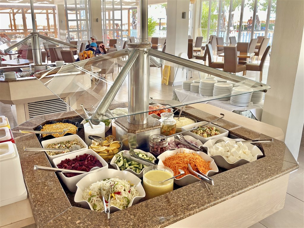raňajky, obedy a večere formou bufetových stolov • počas dňa ľahké občerstvenie, zmrzlina • nealkoholické a miestne alkoholické nápoje, káva, čaj, pivo, lokálne víno do cca 23:00 hod. • možnosť prípravy stravy pre celiatikov na vyžiadanie