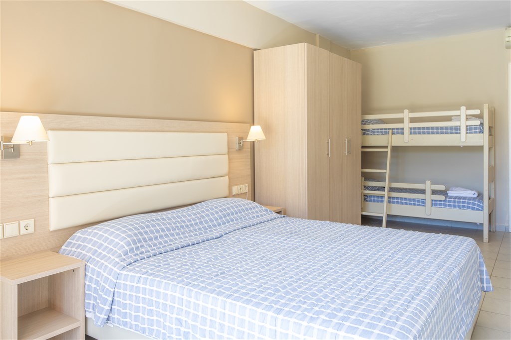 moderné klimatizované 2-lôžkové izby typu superior s možnosťou jednej prístelky alebo izby pre štyri osoby (3. a 4. lôžko je poschodová posteľ) • SAT-TV • telefón • chladnička • balkón/terasa • WiFi zdarma • kúpeľňa s WC • sušič na vlasy