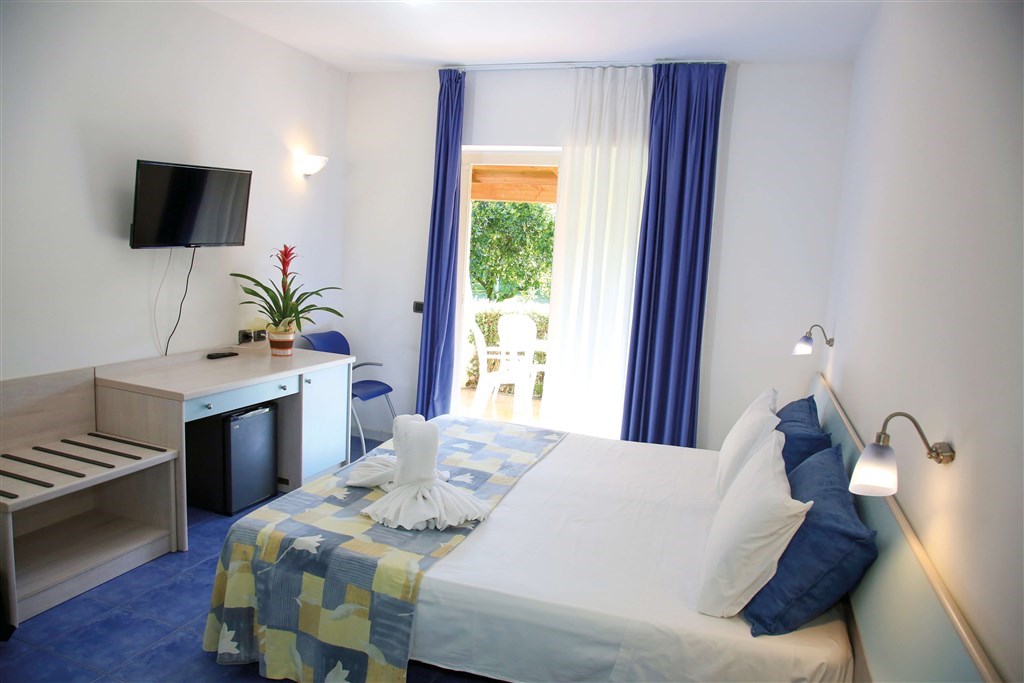 vo vilkách 1: Izby typu Classic : 2-lôžkové izby na poschodí s možnosťou 1 prístelky pre dieťa 2: Izby typu Comfort (za príplatok): priestrannejšie 2-lôžkové izby s možnosťou až 2 prísteliek na prízemí (až pre 4 dospelých) • v niektorých izbách je možnosť ubytovať dieťa do 3 alebo do 6 rokov bez nároku na lôžko •.v oboch typoch izieb: klimatizácia • TV • telefón • minichladnička (naplnenie za poplatok) • trezor • kúpeľňa so sprchou, WC, sušič na vlasy • balkón alebo terasa • detská postieľka na vyžiadanie