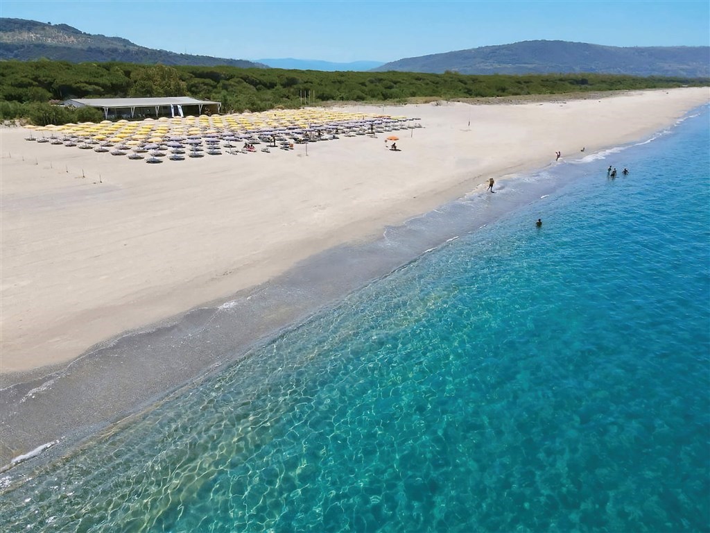 areál končí priamo pri širokej piesočnatej pláži miestami s prímesou jemných kamienkov • plážový servis v časti vyhradenej hotelom (2 ležadlá a 1 slnečník na izbu zdarma) • plážové osušky (za poplatok a vratný depozit) • na pláž (cca 350 m od bazéna) sa dostanete cestičkou cez píniový lesík • plážový bar (za poplatok) • 5 km od mestečka Pizzo • 17 km od letiska v Lamezia Terme