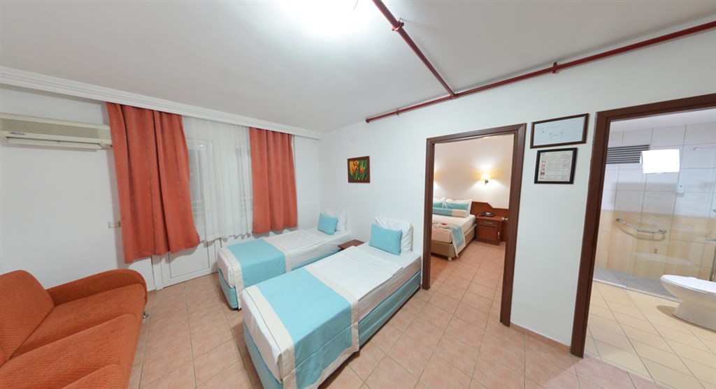 v izbách a rodinných izbách • IZBY – 2-lôžkové izby s možnosťou 2 prísteliek • max. 2 dosp.os. + 2 deti alebo 3 dosp.os. + 1 dieťa • Rodinné izby pre 2-6 osôb - obývacia izba s jednou alebo dvomi spálňami • klimatizácia • sprcha/WC • sušič vlasov • SAT-TV • telefón • rýchlovarná kanvica • balkón • minibar • trezor (za poplatok)