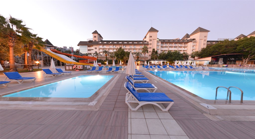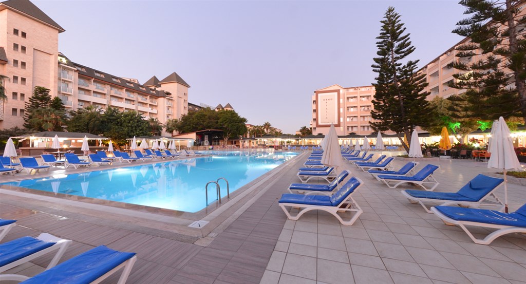 vstupná hala s recepciou • lobby bar • hlavná reštaurácia • snack reštaurácia • a‘la carte reštaurácia (za poplatok) • WiFi pripojenie na recepcii zdarma • bar pri veľkom bazéne • relax bar • snack bar • diskotéka (nápoje za poplatok) • TV miestnosť • veľký bazén • bazén s toboganmi • detský bazén • menší vonkajší relaxačný bazén • vnútorný bazén • ležadlá a slnečníky zdarma • miniklub pre deti • detské ihrisko • internetová kaviareň (pripojenie za poplatok) • fitness •. wellness • turecký kúpeľ • sauna zdarma • denné a večerné animácie pre deti a dospelých • za poplatok – masáže • salón krásy • obchody • kaderníctvo • lekár
