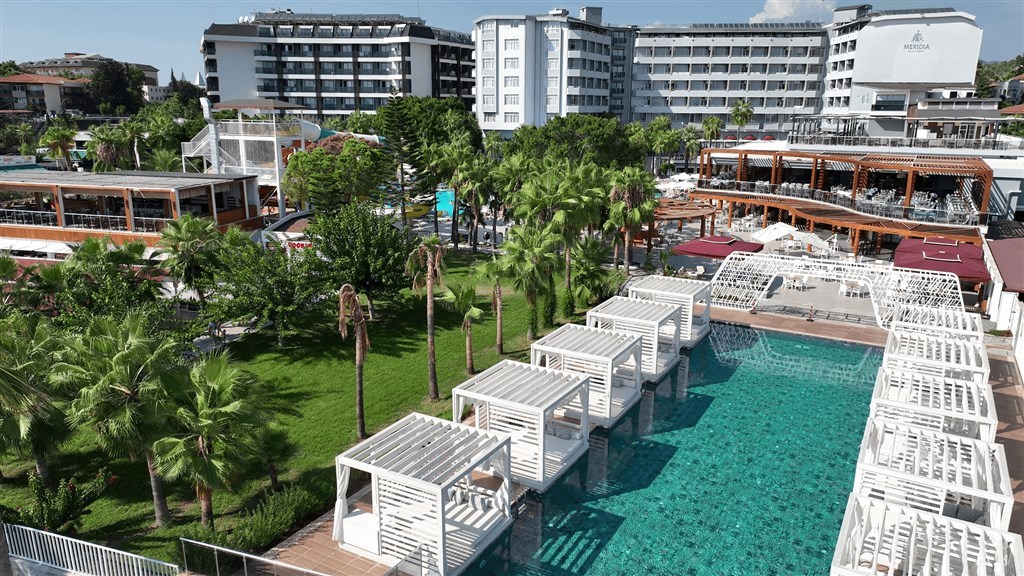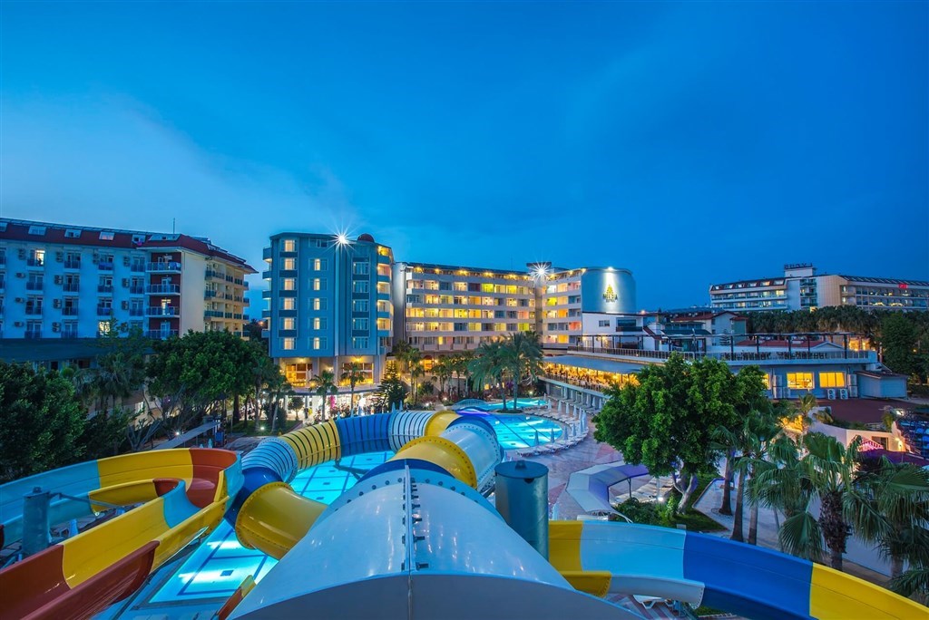 vstupná hala s recepciou • hlavná reštaurácia • 2 a´la carte reštaurácie • lobby bar • pool bar • beach bar • snack bar • cukráreň • rozsiahly vonkajší bazén s 3 toboganmi • nekonečný (infinity) bazén • detský bazén • vnútorný bazén • SPA a wellness centrum • sauna • fitness centrum • miniklub • detské ihrisko • vodné športy • amfiteáter • medzinárodné hotelové animácie • wifi