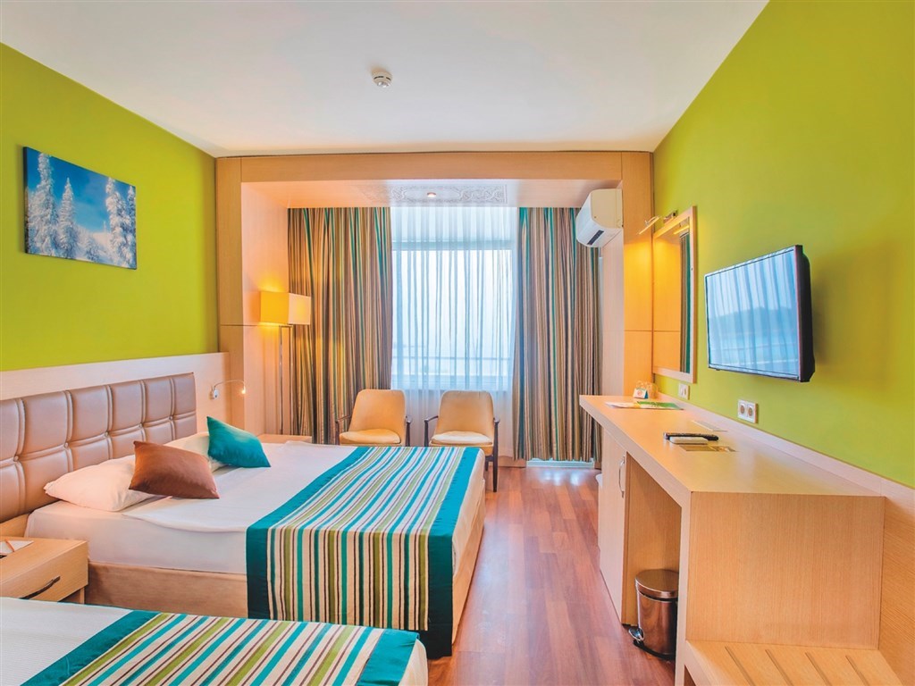 raňajky, neskoré raňajky, obedy a večere formou švédskych stolov vrátane nápojov • miestne alkoholické a nealkoholické nápoje • detský bufet • občerstvenie a snacky počas dňa • turecké placky • ľahšie nočné občerstvenie • slnečníky a ležadlá pri bazéne a na pláži • medzinárodné hotelové animácie