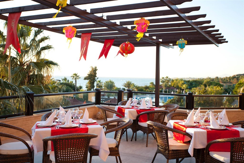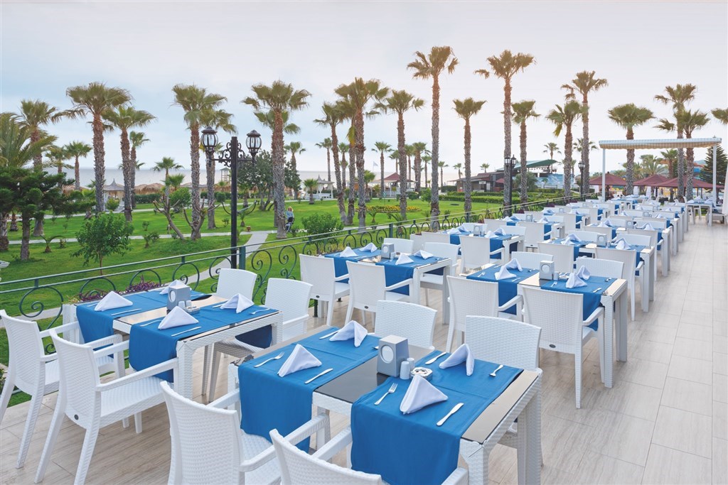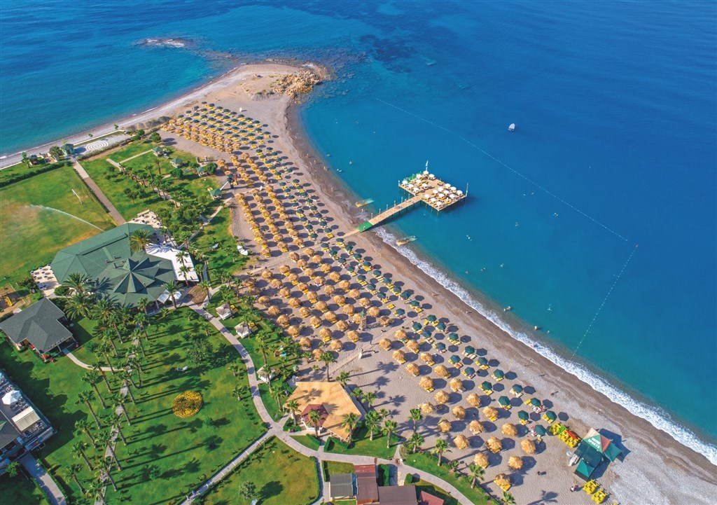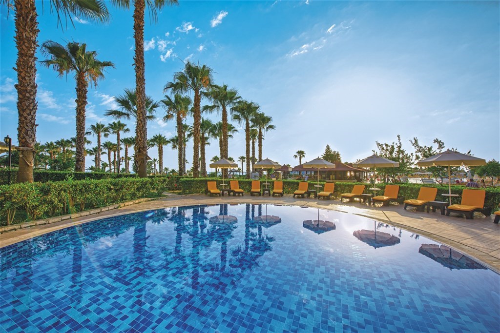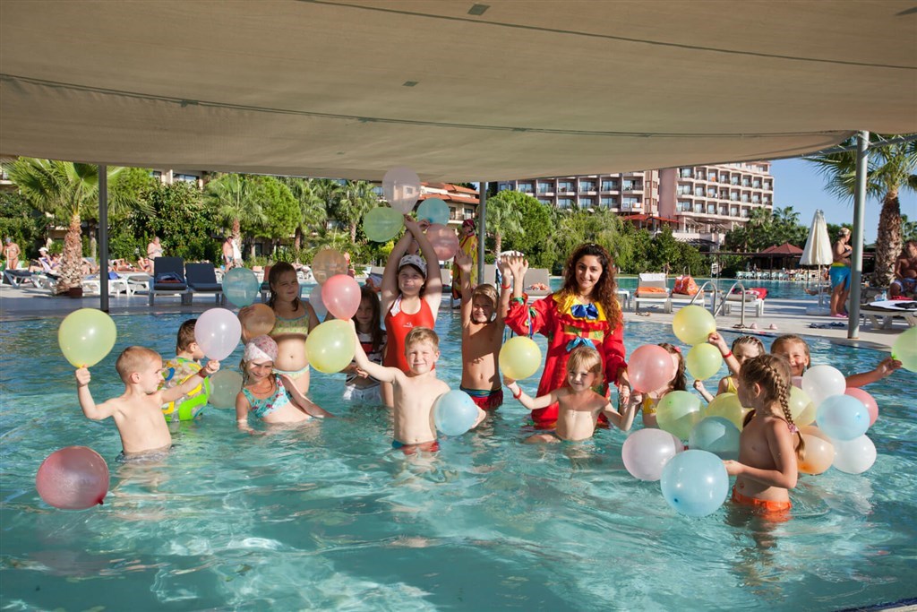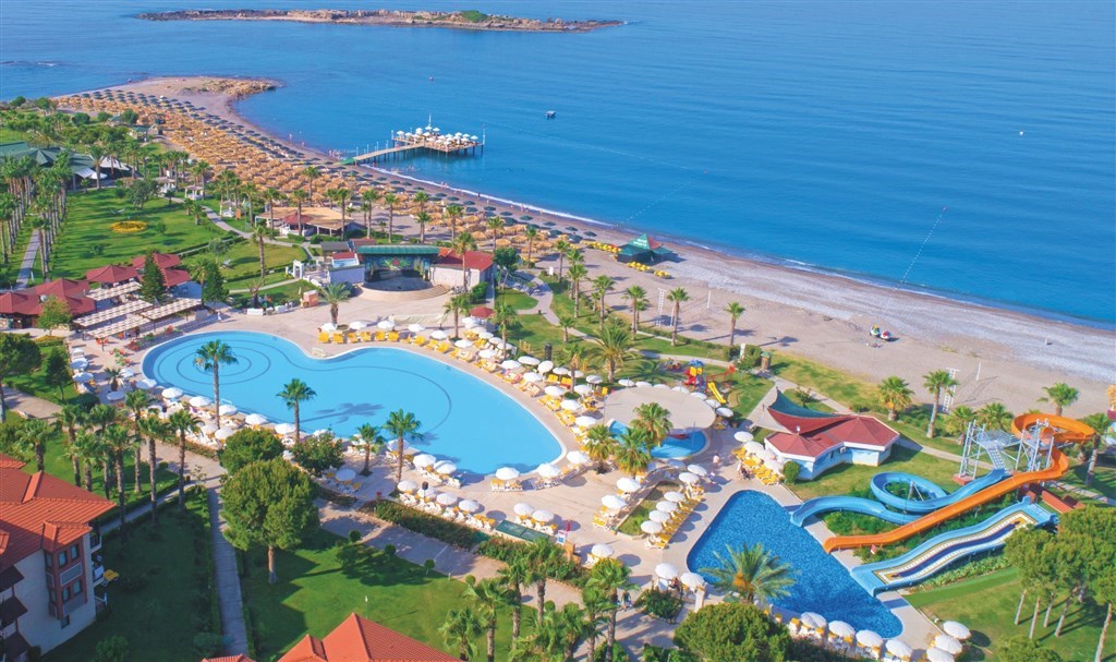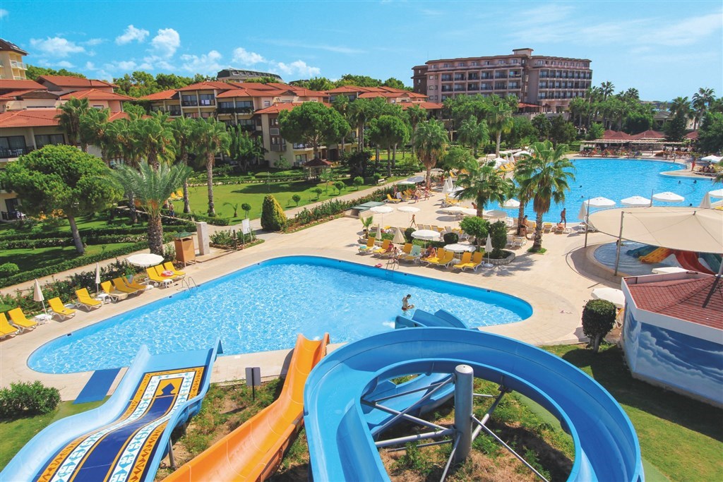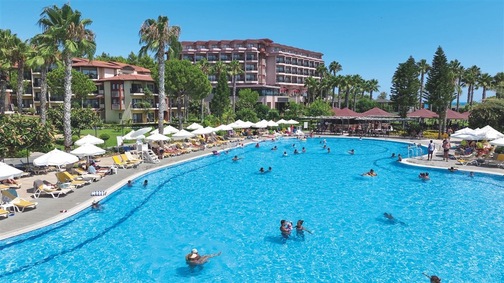 vstupná hala s recepciou • hlavná reštaurácia s terasou • 3 a´la carte reštaurácie (turecká, rybia, talianska - nutná rezervácia vopred) • lobby bar • plážový bar • bar pri bazéne • snack bar • disco bar • cukráreň • vonkajší bazén • vonkajší bazén s toboganmi • detský bazén so šmykľavkou • vnútorný bazén • SPA a wellness centrum (masáže, turecké kúpele a peeling za poplatok) • sauna • kaderníctvo • fitness centrum • aerobik • vodné pólo • vodná gymnastika • tenisové kurty • futbalové ihrisko • plážový volejbal • stolný tenis • šípky • biliard (za poplatok) • boccia • herňa • miniklub (pre deti od 4 do 12 rokov) • požičovňa kočíkov (za poplatok) • detské ihrisko • minidisco • baby corner • minimarket • amfiteáter • ponuka rôznych vodných športov na pláži (za poplatok) • živá hudba • hotelové animácie • wifi v konferenčnej miestnosti (zdarma)