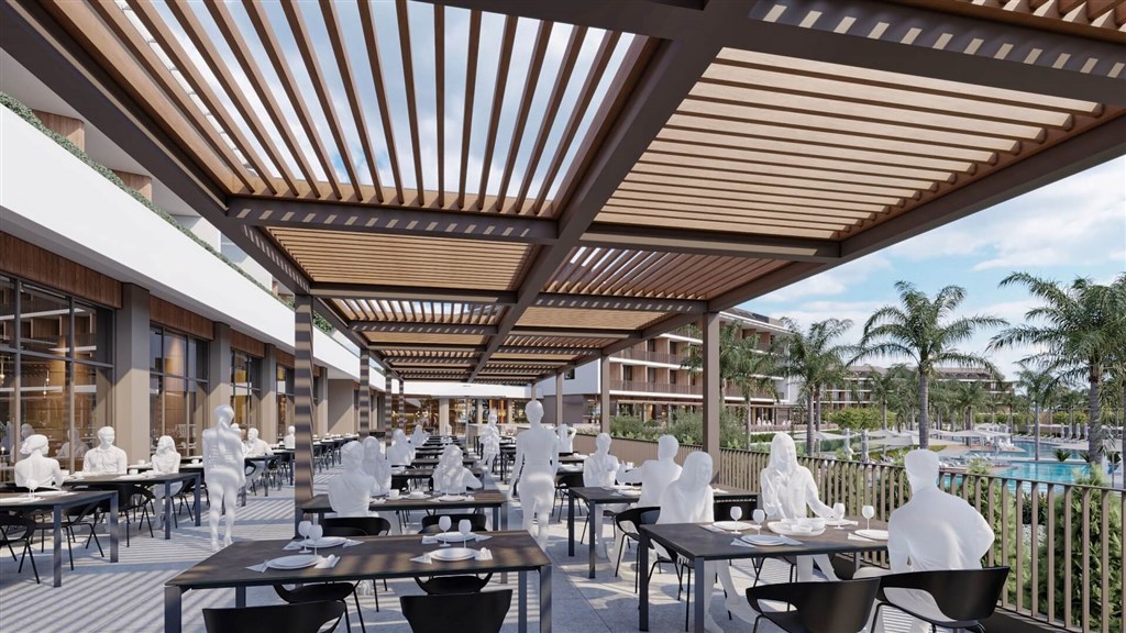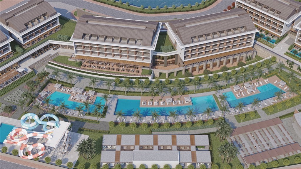 hlavná budova s recepciou a 7 blokov • hlavná reštaurácia • 3 a´la carte reštaurácie • lobby bar • pool bar • beach bar • cukráreň • zmrzlináreň • 3 vonkajšie bazény (bazén 18+, relaxačný bazén, detský bazén) • vnútorný bazén • sauna • SPA a wellness centrum • fitness centrum • športoviská • aquapark • splashpark • vodné športy na pláži • amfiteáter • miniklub • juniorklub • medzinárodné hotelové animácie a večerný program • wifi