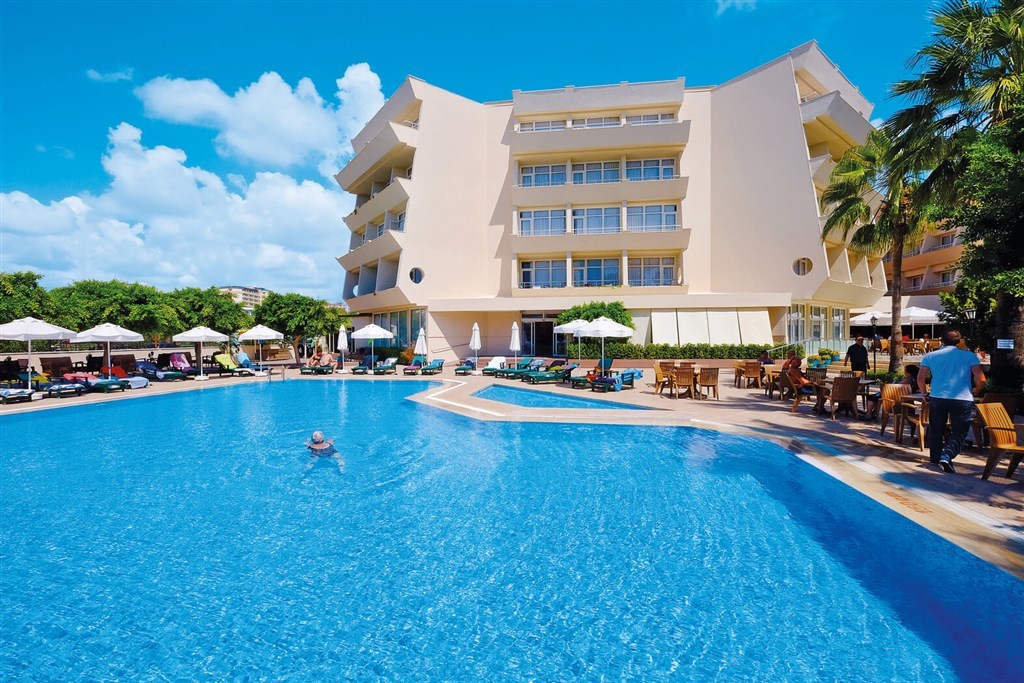 útulný hotel s vynikajúcou polohou priamo pri piesočnatej pláži s pozvoľným vstupom do mora • 27 km od Manavgatu • iba 15 minút chôdze od centra Side • cca 65 km od medzinárodného letiska v Antalyi