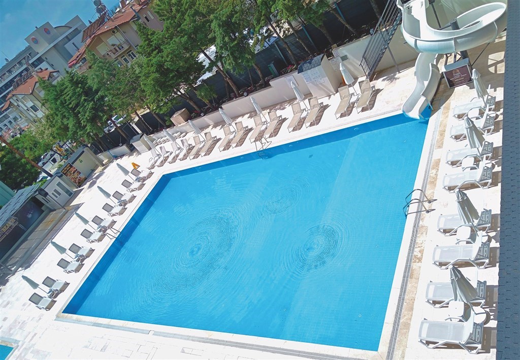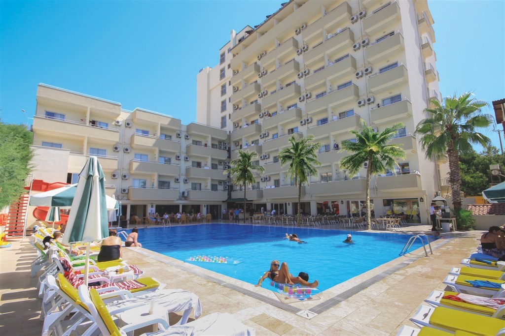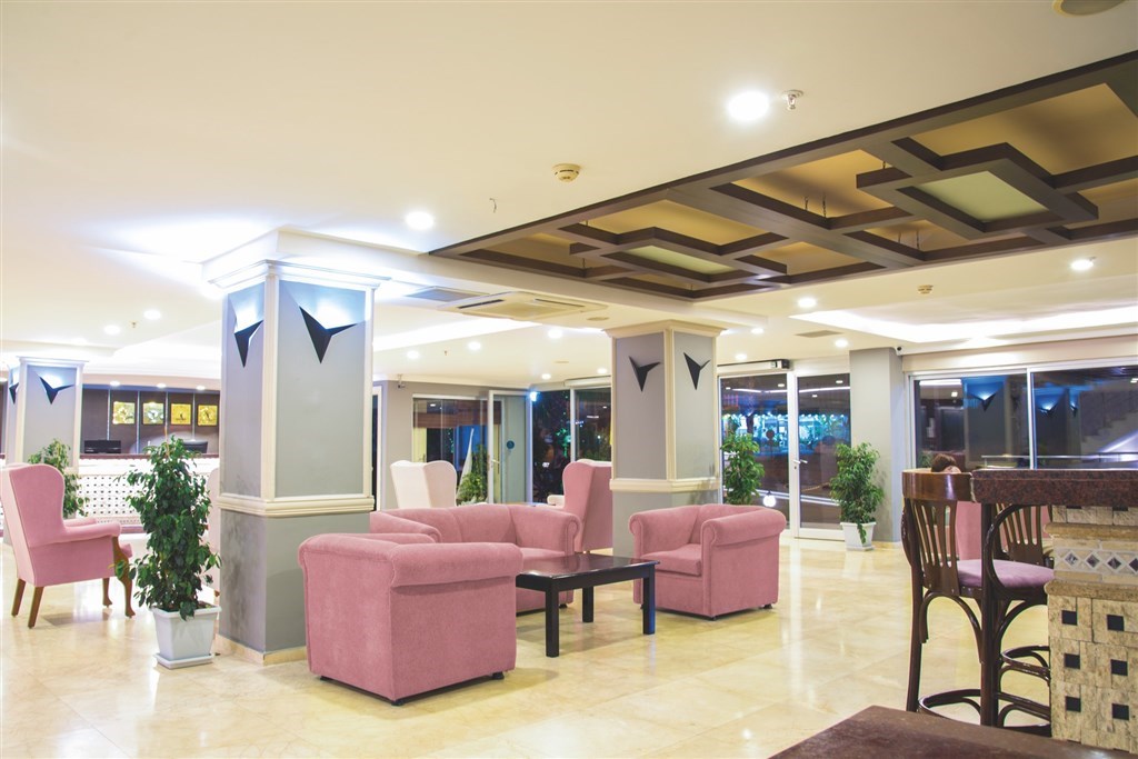 recepcia • hlavná hotelová reštaurácia • 2 bary • vonkajší bazén so šmykľavkou • detský bazén • vnútorný bazén • turecké kúpele, sauna a masáže (za poplatok) • fitness centrum • biliard (za poplatok) • šípky • stolný tenis • plážový volejbal • aerobik • hotelový lekár • kaderníctvo • disco • detské ihrisko • hotelové animácie • wifi v lobby (zdarma) • ponuka rôznych vodných športov na pláži (za poplatok)