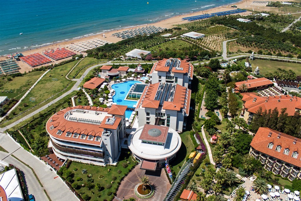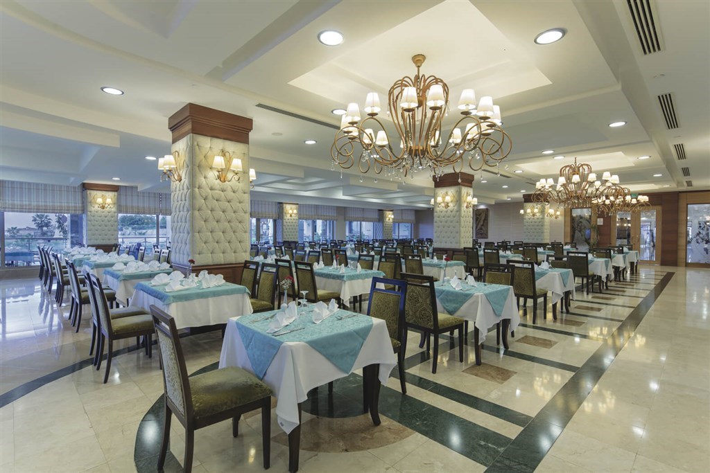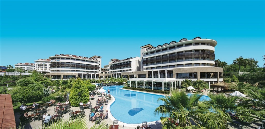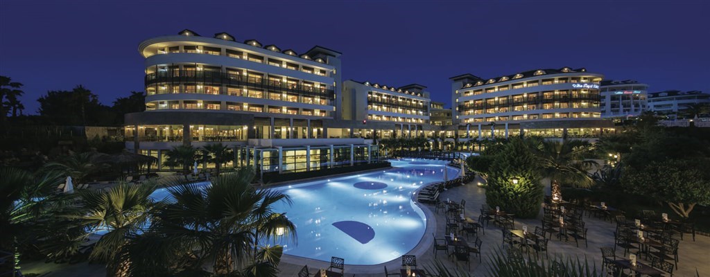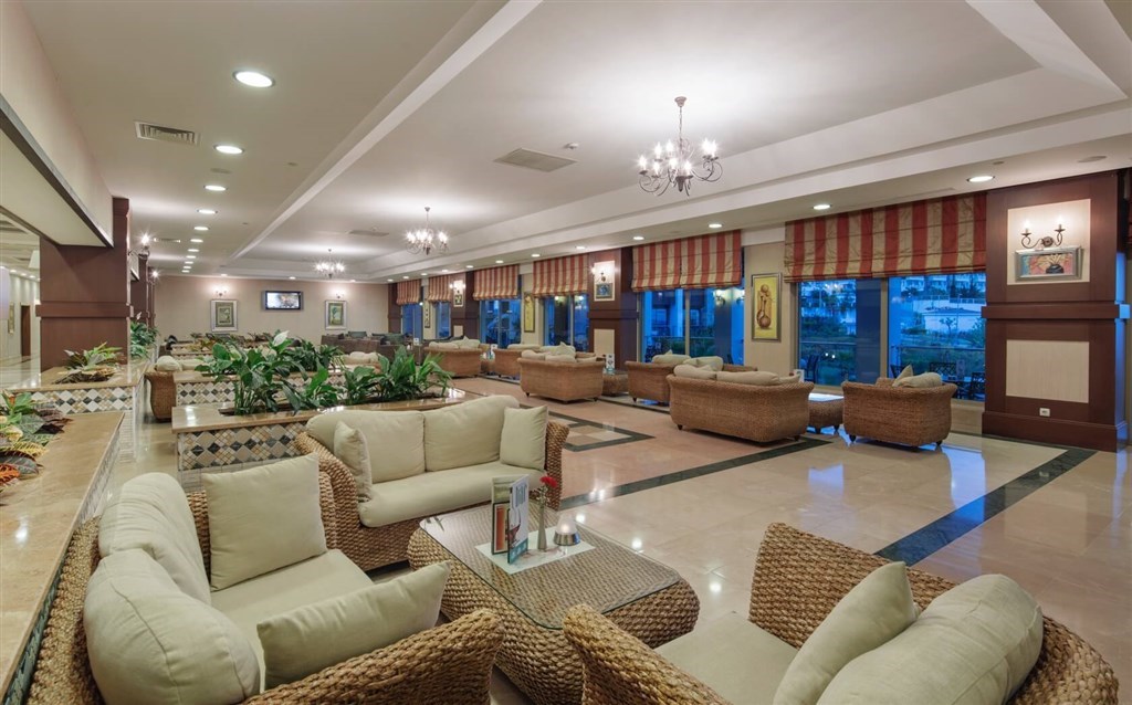 vstupná hala s recepciou • 2 hlavné reštaurácie s posedením na terase • 3 a´la carte reštaurácie (turecká, kubánska, rybia - nutná rezervácia vopred) • plážový bar • 5 barov • kaviareň • vonkajší bazénový komplex • vnútorný bazén • beauty centrum a kaderníctvo (za poplatok) • sauna • SPA a wellness centrum (masáže, turecké kúpele a peeling za poplatok) • fitness centrum • aerobik • zumba • gymnastika • šípky • boccia • stolný tenis • bowling a biliard (za poplatok) • herňa • minigolf • plážový volejbal • aerobik • ponuka vodných športov na pláži (za poplatok) • nákupná zóna • amfiteáter • disco • medzinárodné hotelové animácie • večerný program • wifi v spoločných priestoroch a na pláži (zdarma)