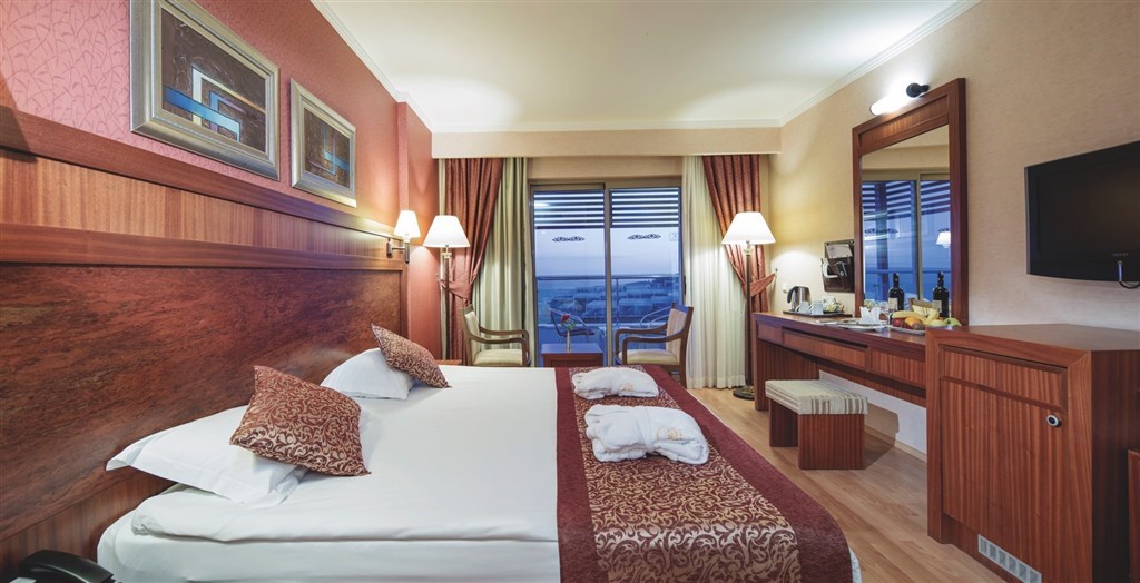 elegantné zariadené 2-lôžkové izby s možnosťou 1 prístelky (pre osoby 16+) • klimatizácia • TV • telefón • trezor • minibar (denne dopĺňaný vodou a nealkoholickými nápojmi) • rýchlovarná kanvica (čaj, káva k dispozícii) • kúpeľňa so sprchou, resp. vaňou, WC a sušičom na vlasy • balkón s posedením • wifi (zdarma)