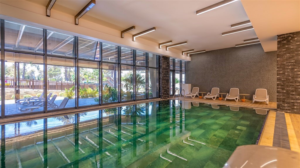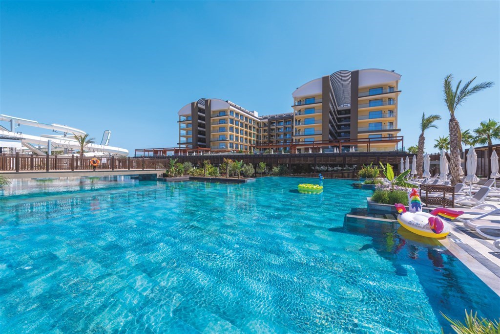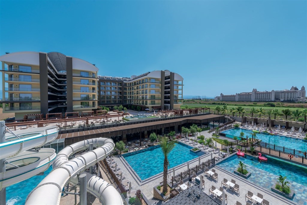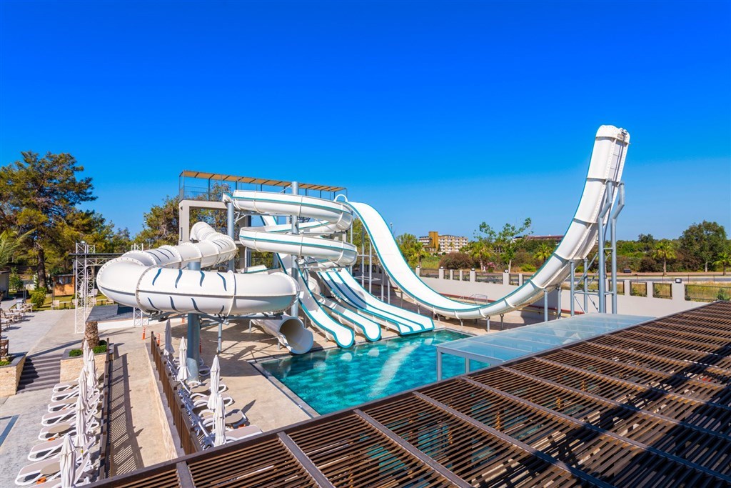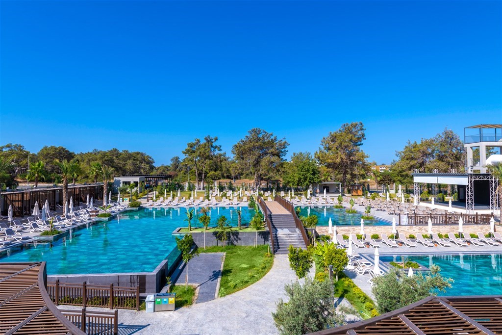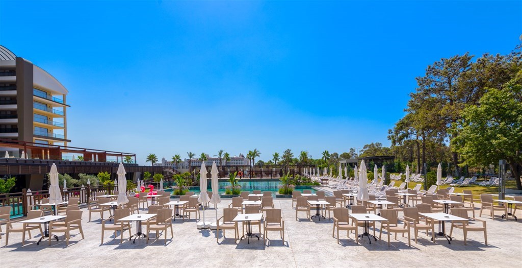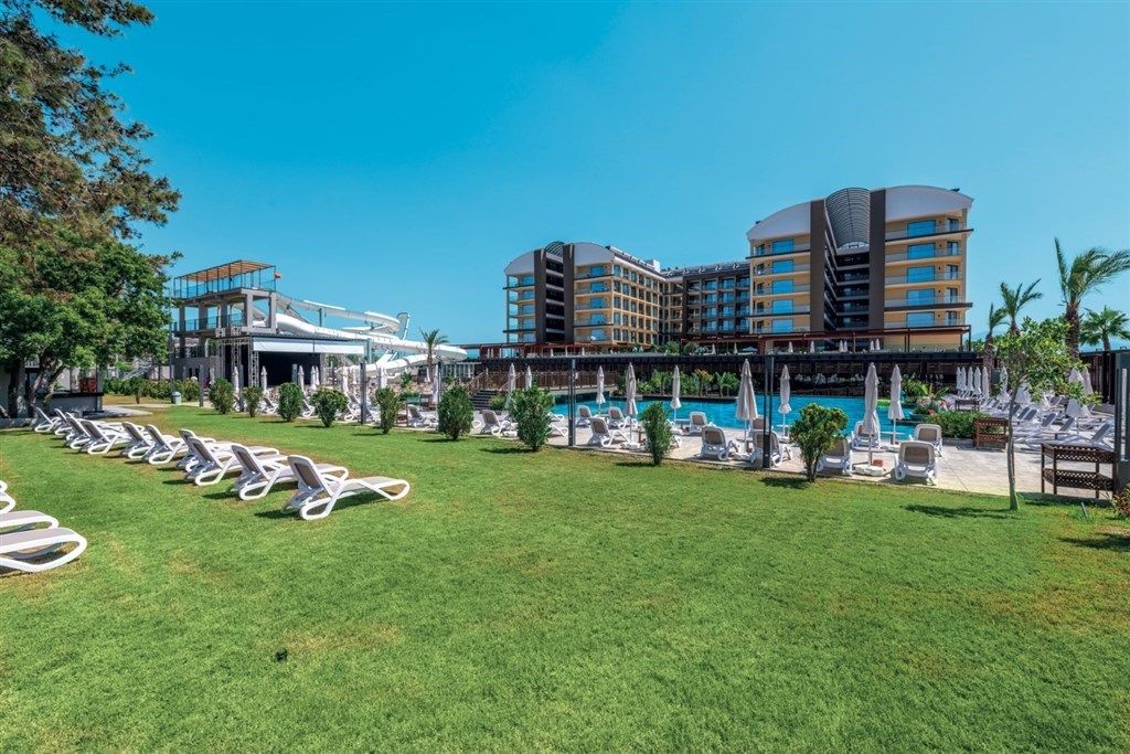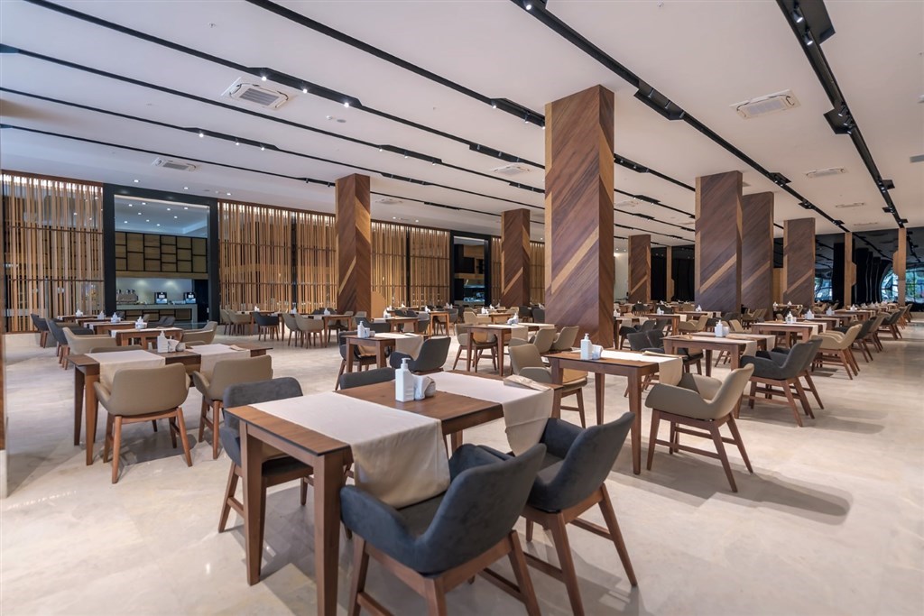 vstupná hala s recepciou a posedením • hlavná reštaurácia • 2 a´la carte reštaurácie (turecká a rybia, rezervácia nutná vopred) • lobby bar • 24 hod. snack bar • pool bar • beach bar a beach snack bar s bohatou ponukou občerstvenia počas obeda a celého dňa • vonkajší relaxačný bazén • vonkajší bazén s otváracou dobou 24 hod. (počas dňa možné športové aktivity) • bazén s toboganmi • vnútorný bazén • SPA a wellness centrum (masáže, turecké kúpele a peeling za poplatok) • fitness centrum • joga • pilates • aerobik • vodné pólo • vodná gymnastika • stolný tenis • boccia • šípky • lekcie tanca • plážový volejbal • beach párty • požičovňa bicyklov • medzinárodné hotelové animácie a večerný program • ponuka rôznych vodných športov na pláži (za poplatok) • wifi (zdarma v celom areáli)